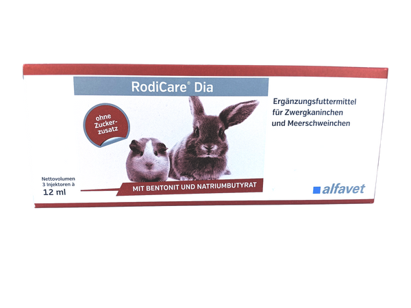 Meerschweinchen, Zwergkaninchen: 2 x tägl. 1 ml pro kg Körpergewicht über 3-5 Tage. Bei Bedarf kann die Fütterungsdauer in Absprache mit dem Tierarzt verlängert werden. Aufgrund des erhöhten Bentonit-Gehaltes die empfohlene Fütterungsmenge nicht überschreiten.
