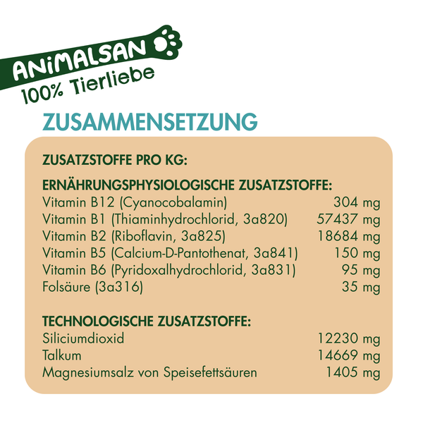 Ergänzungsfuttermittel mit Vitamin B1, B2, B5, B6, B12 & Folsäure