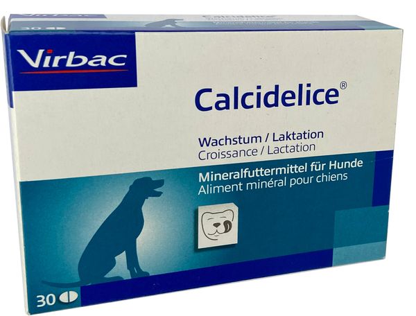 Calcidelice ist ein Minteralfuttermittel für Hunde. Es enthält Calcium und Phosphor im idealen Verhältnis von 2 : 1. Vitamin D3 unterstützt die Absorption und den Stoffwechsel beider Mineralien. Calcidelice wird für wachsende Hunde und laktierende Hündinnen empfohlen.