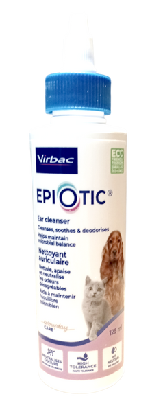 Epi-Otic ist ein nach veterinärdermatologischen Gesichtspunkten entwickelter, nicht reizender Reiniger für den äußeren Gehörgang.