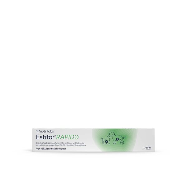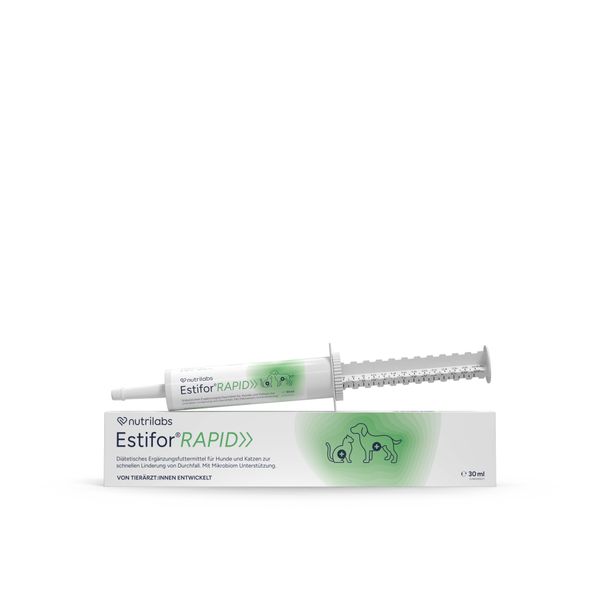 Die Estifor® RAPID Paste unterstützt Hunde und Katzen schnell und zuverlässig bei akutem Durchfall. Zusätzlich enthält sie eine umfassende Kombination an prä-, pro- und postbiotischen Komponenten, um den Darm bestmöglich beim Wiederaufbau eines stabilen Mikrobioms zu unterstützen. Eine geschädigte Darmflora führt häufig zu wiederkehrendem Durchfall, daher ist eine frühzeitige Stabilisierung besonders wichtig.