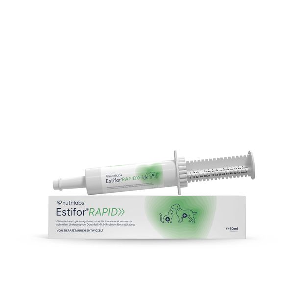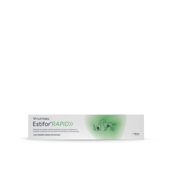 Die Estifor® RAPID Paste unterstützt Hunde und Katzen schnell und zuverlässig bei akutem Durchfall. Zusätzlich enthält sie eine umfassende Kombination an prä-, pro- und postbiotischen Komponenten, um den Darm bestmöglich beim Wiederaufbau eines stabilen Mikrobioms zu unterstützen. Eine geschädigte Darmflora führt häufig zu wiederkehrendem Durchfall, daher ist eine frühzeitige Stabilisierung besonders wichtig.
