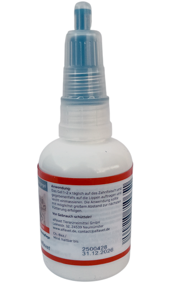 Das Gel 1 - 2 mal täglich auf das Zahnfleisch und gegebenenfall auf die Lippen auftragen und leicht einmassieren. Die Anwendung sollte mit möglichst großem Abstand zur nächsten Fütterung erfolgen.