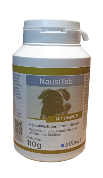Kautablette zur einzelnen Gabe oder zur Verfütterung mit einer kleinen Mahlzeit. Bei Bedarf eine halbe bis eine Stunde vor Autofahrten oder Stresssituationen. Bei einem Gewicht bis 10 kg ½ Kautablette von 10 bis 20 kg 1 Kautablette über 20 kg 2 Kautabletten. Die Gabe kann nach 3–4 Stunden wiederholt werden. Bei morgendlichem Erbrechen oder empfindlichem Magen kann Nausi Tab® auch abends, bzw. morgens und abends gegeben werden. Während der Gabe von Nausi Tab® sollte Wasser zur beliebigen Aufnahme zur Verfügung gestellt werden. Nausi Tab® enthält keine allergenen Bestandteile aus Soja, glutenhaltigem Getreide, Milch, Rind oder Schwein. Nicht über 25°C und trocken lagern!