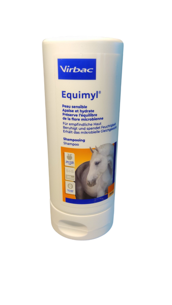 Equimyl Shampoo ist ein spezielles Shampoo für die Hautpflege empfindlicher Pferde. Sie eignet sich für Tiere, die zu Juckreiz, Hautallergien oder Sommerekzem neigen. Aufgrund ihrer hautberuhigenden und juckreizstillenden Eigenschaften eignet sich Equimyl auch zur Pflege bei Pferden, die sich - vor allem bei sommerlichem Insektendruck - Schweifrübe und Mähnenkamm scheuern und dabei das Langhaar beschädigen.