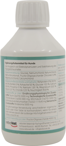 Zum Ausgleich von Elektrolytverlusten und zur Stabilisation des Flüssigkeitshaushalts, unter anderem nach starkem Wasserverlust und nach körperlich anstrengenden Leistungen bei Hunden.