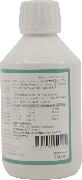 Bei übermäßigem Wasser- und Elektrolytverlust 2-3 x am Tag verabreichen, sonst 1 x täglich oder nach Bedarf.