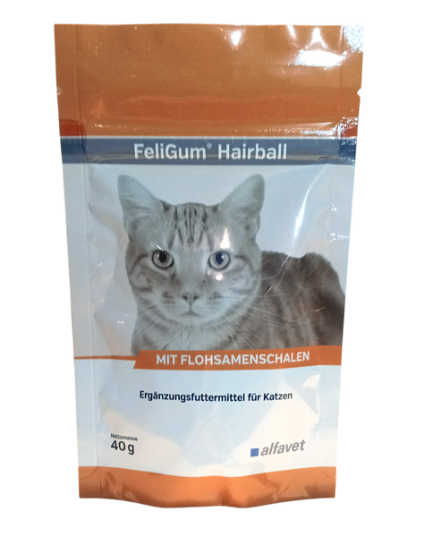 FeliGum Hairball sind außerordentlich wohlschmeckende und weiche Kaudrops, die die Ausscheidung von im Magen-Darmtrakt befindlichen Haaren und Haarballen fördern.
