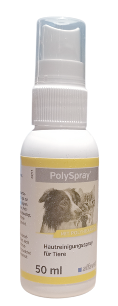 PolySpray® besteht aus wasserlöslichen Bestandteilen, die sich gut zur hygienischen Wundreinigung eignen. Dank der flüssigen, nicht fettenden Darreichungsform können auch größere Wundflächen mit wenig Aufwand gereinigt werden. Schmutz, abgestorbene Zellen, Fettpartikel und Talgreste werden beseitigt, wodurch Bakterien und Hefen die Nahrungsgrundlage entzogen wird.