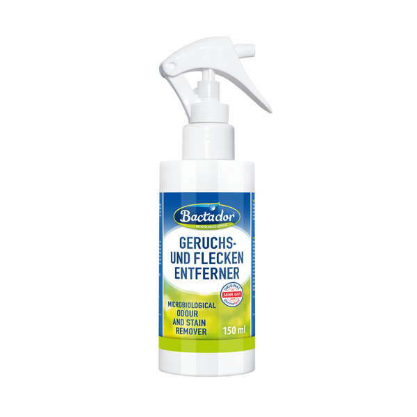 Um Gerüche und Flecken richtig und nachhaltig zu entfernen ist es notwendig, die Geruchsquelle nicht nur zu überdecken, sondern wirksam zu beseitigen. Der Bactador Geruchs- und Fleckenentferner ist ideal für den zuverlässigen Einsatz im Haushalt und in der Tierumgebung, z.B. bei Schweiß, Speichel, Erbrochenem, Kot-/ Urinflecken, Haustiergerüchen, Reviermarkierungen u.v.m.